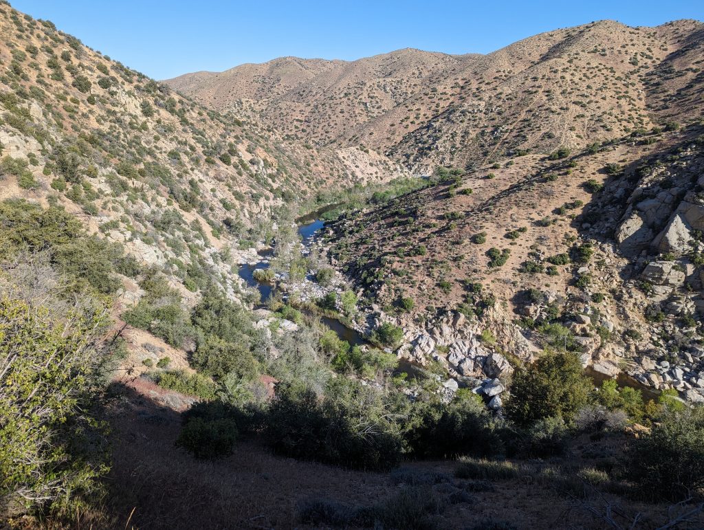 Soon the landscape will change and I keep getting further into a canyon. There I follow the river along the slope and it goes up and down. At a small stream I fill up my water and then start looking for a campsite. After a total of 40 km I will find it. Since I want to sleep without a tent again today, I’ll cook something else to eat and then read something else.
