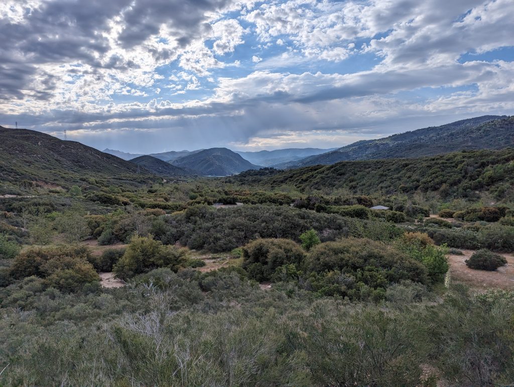 It’s been going quite relaxed for a long time and since it’s cloudy today, I can walk without much effort. I walk over hills through bushes and hardly take any breaks. Only after 10 miles (16 km) do I take a little break at a stream to fill up my water and eat my last chips.