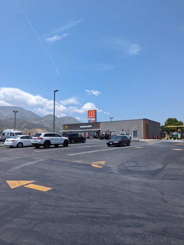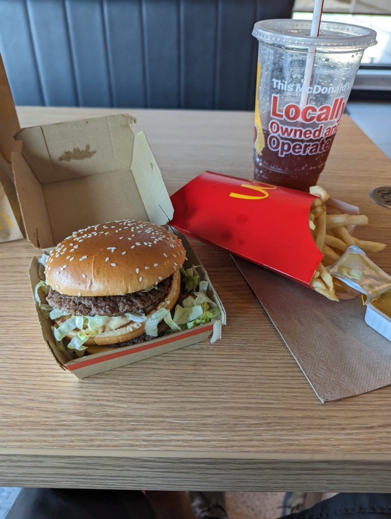 I’ve had the 0.4 miles quickly and so I’m already sitting in Mc Donalds shortly after 12 and eat a bigmac with fries and drink spezi. Besides me, there are many other hikers here who half occupied the restaurant. But I only see two familiar faces. Since he had problems, they came here by car yesterday and are waiting for the rest of their group. Since I’m not really full after the first course, I’ll buy 4 more cheeseburgers and I’ll eat them in a short time. There’s more coke and then I’m really stuffed. At least I should have refilled my calories a bit.