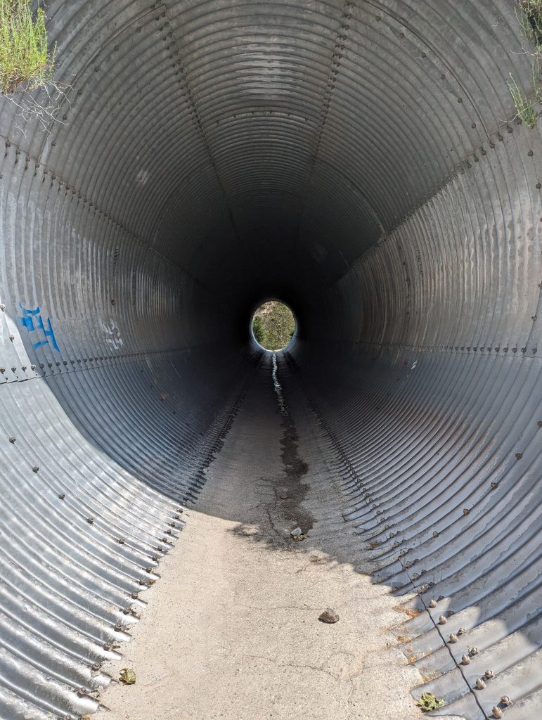 After about 1.5 hours I set off again in the midday sun. Today, however, running is quite pleasant. First it goes briefly along the railway line before I cross it through a tunnel.