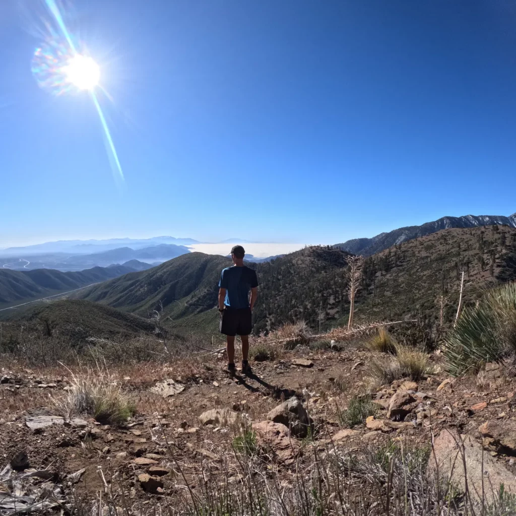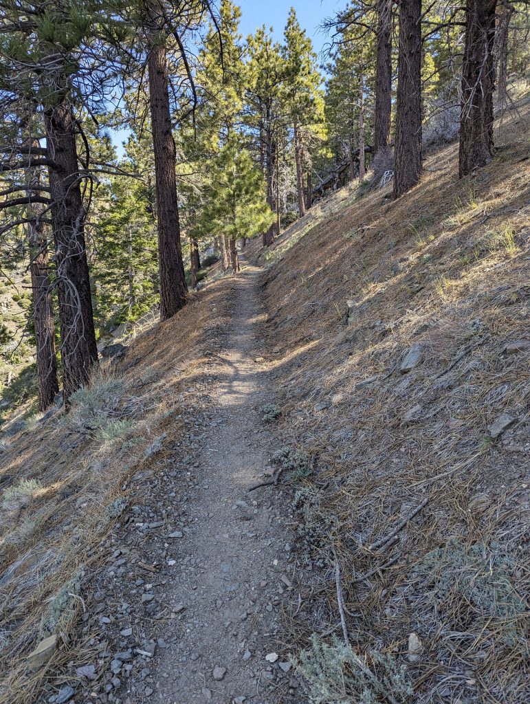After that it goes further up and gradually I notice the long distance from yesterday. Nevertheless, I continue to run without major breaks. At the top it’s a short walk through the forest and then I’ll meet the turn that leads me down to Wrightwood.