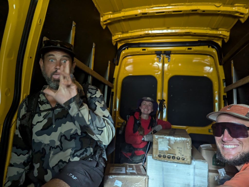 Gonzo, Hudini, Garrett and I spontaneously decide to start the 24-hour challenge tomorrow. We try to cover as many miles as possible in 24 hours. Let’s see how many we’ll be able to do. When Hudini’s shoes arrive shortly after 5 p.m., we set off together to walk a few more miles to a hut. From there we want to start our challenge tomorrow.