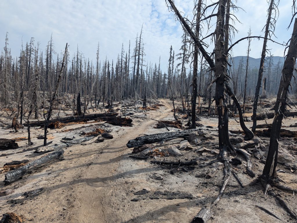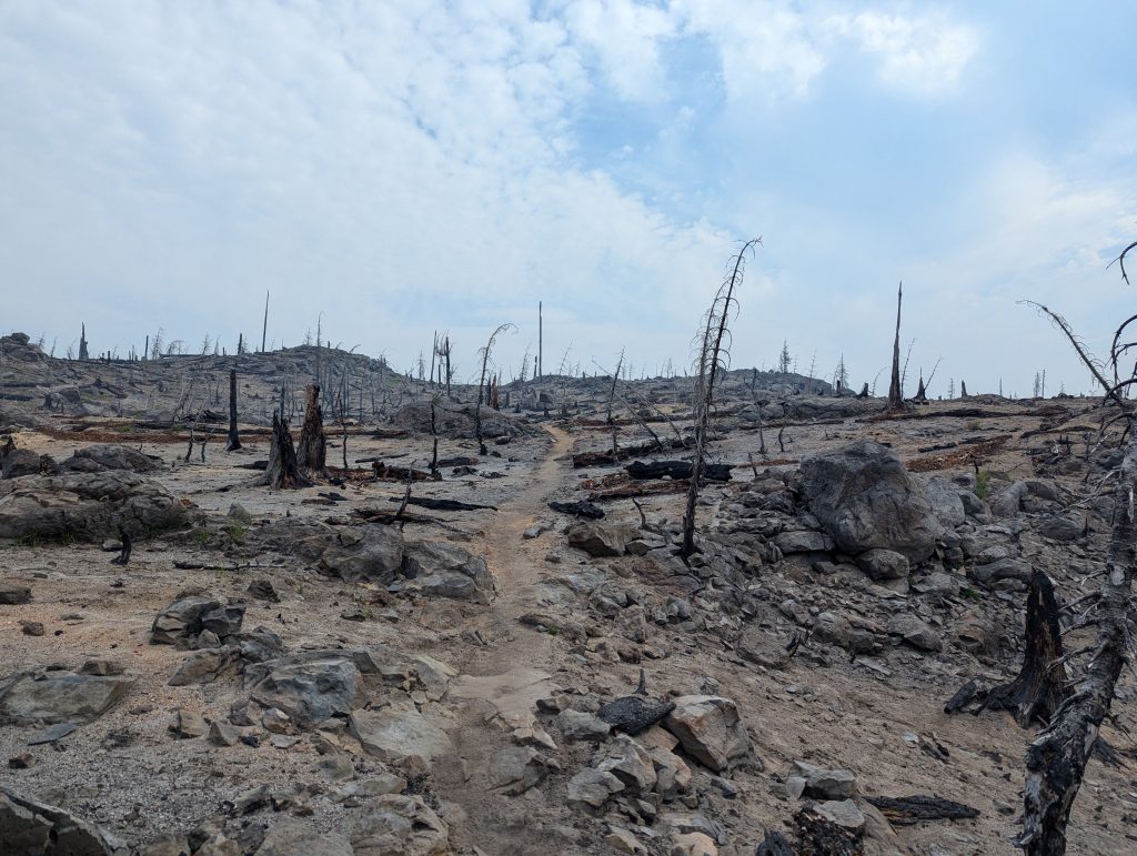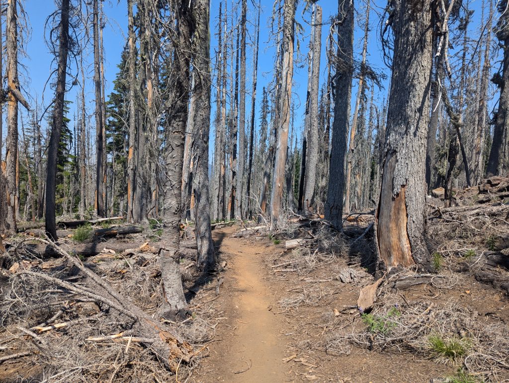 After the section in the forest, it goes through a lunar landscape of burned trees for a long time, which reminds me a little of a battlefield.