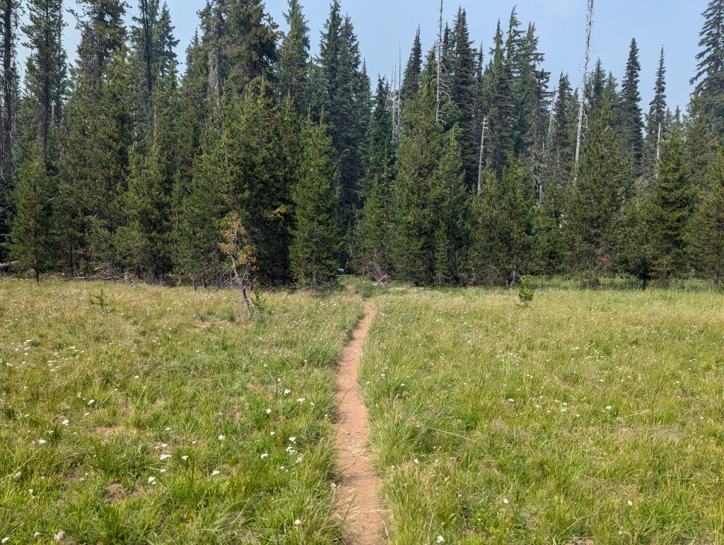 It continues along lakes through the forest and in between I also walk over smaller meadows.