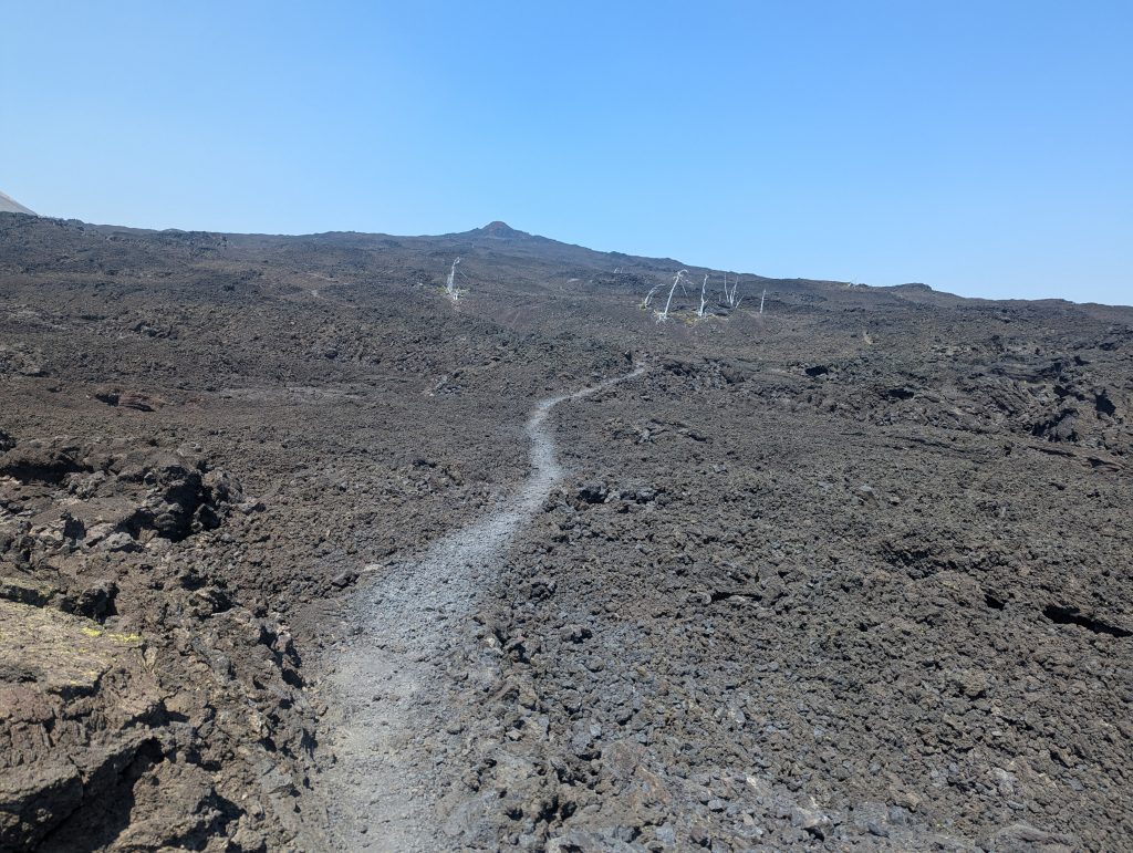 After a while it gets even worse, as it suddenly continues over lava rock, which is very uncomfortable for the feet. Apparently, Garett has just as much problems as I am and we both walk badly through this landscape. Even if the surroundings look nice, running here is a real agony. Unfortunately, it’s several miles over the hard scree and everything hurts.