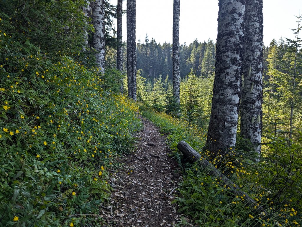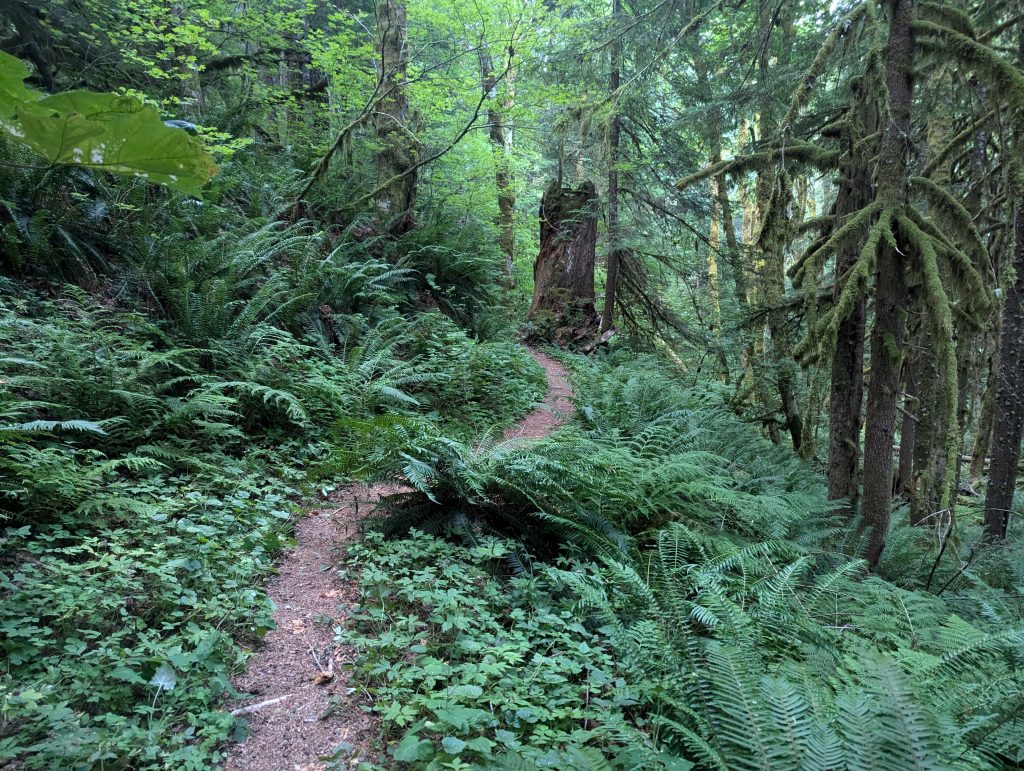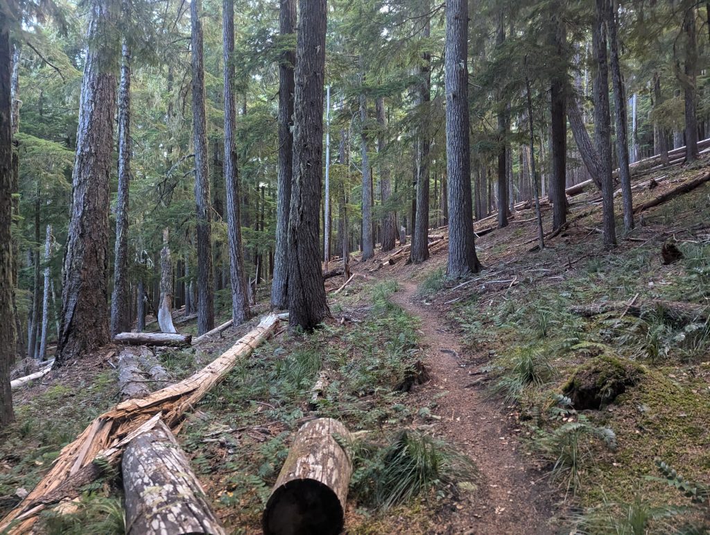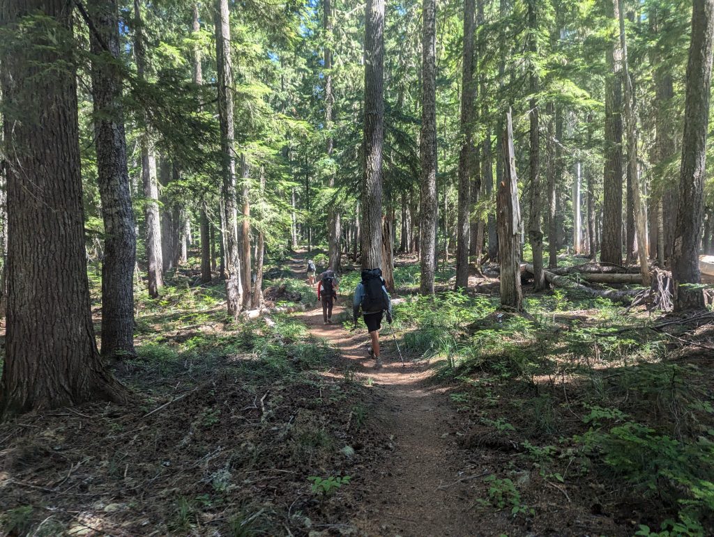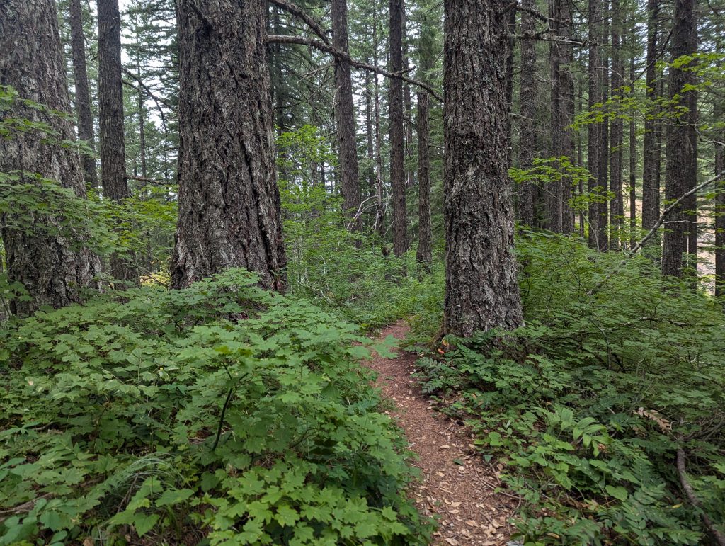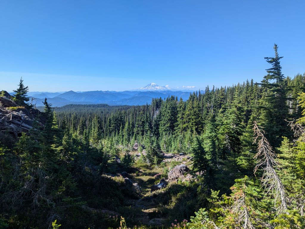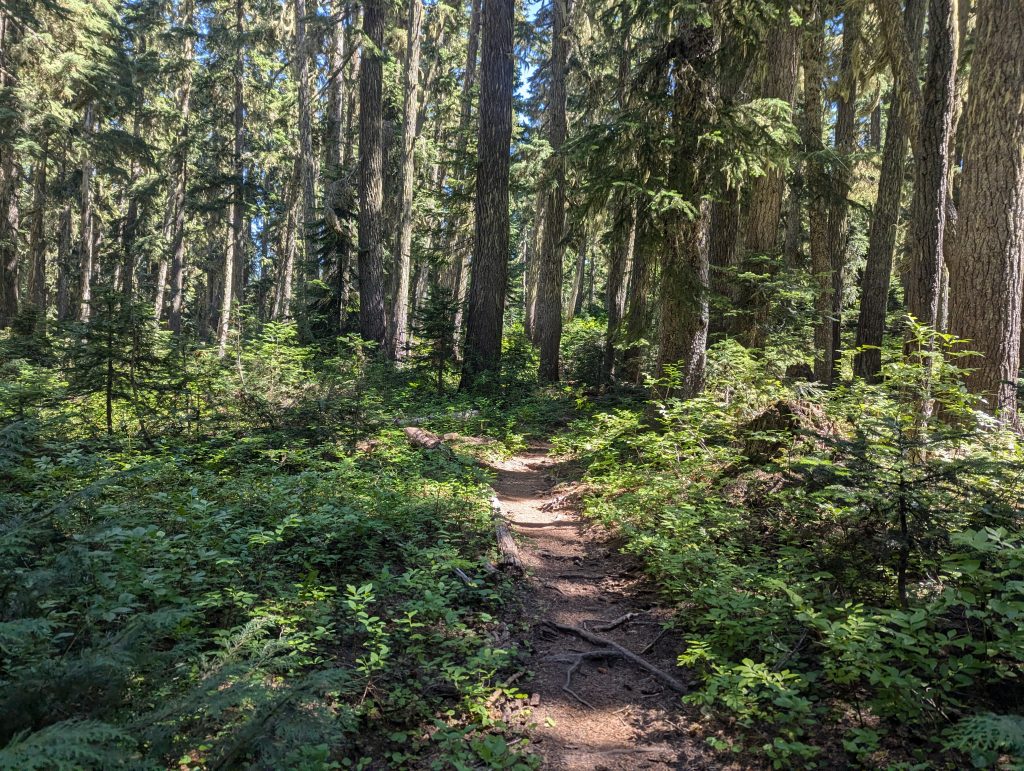 After the bridge, it goes briefly along the road and then the PCT quickly turns back into the forest. Washington then greets me directly with a 1400 meter climb, which makes me sweat pretty quickly in the midday heat. My freshly washed shirt is completely sweaty after just a few minutes and in the next few hours I’m going up the mountain more and more. After all, I’ve been out and about in the forest most of the time, which makes the whole thing a little more bearable.