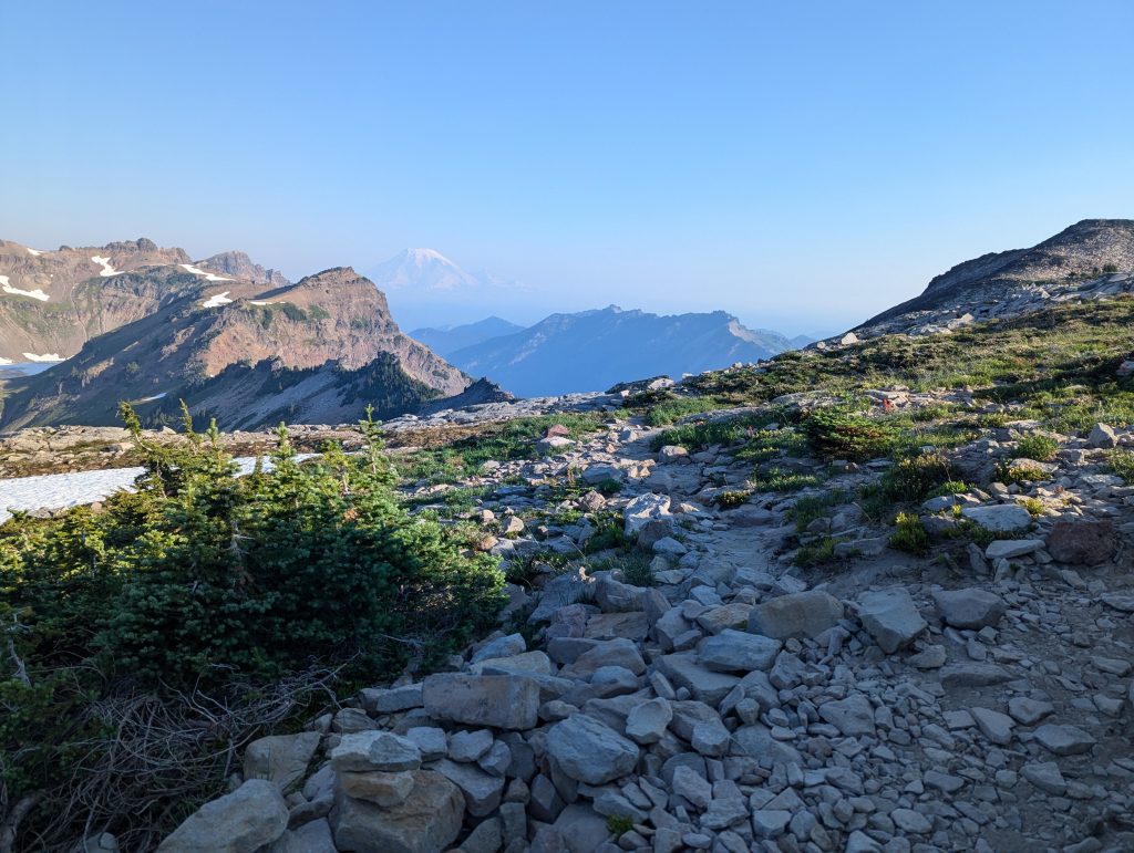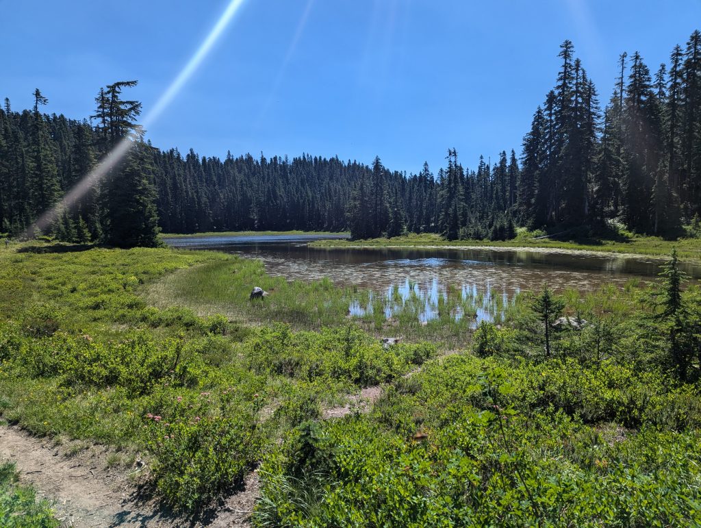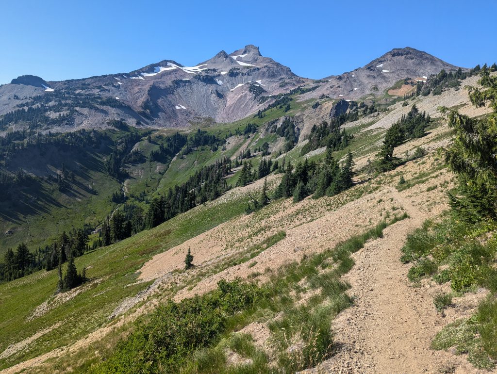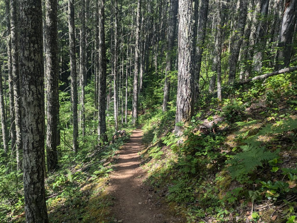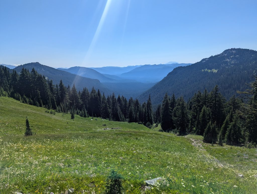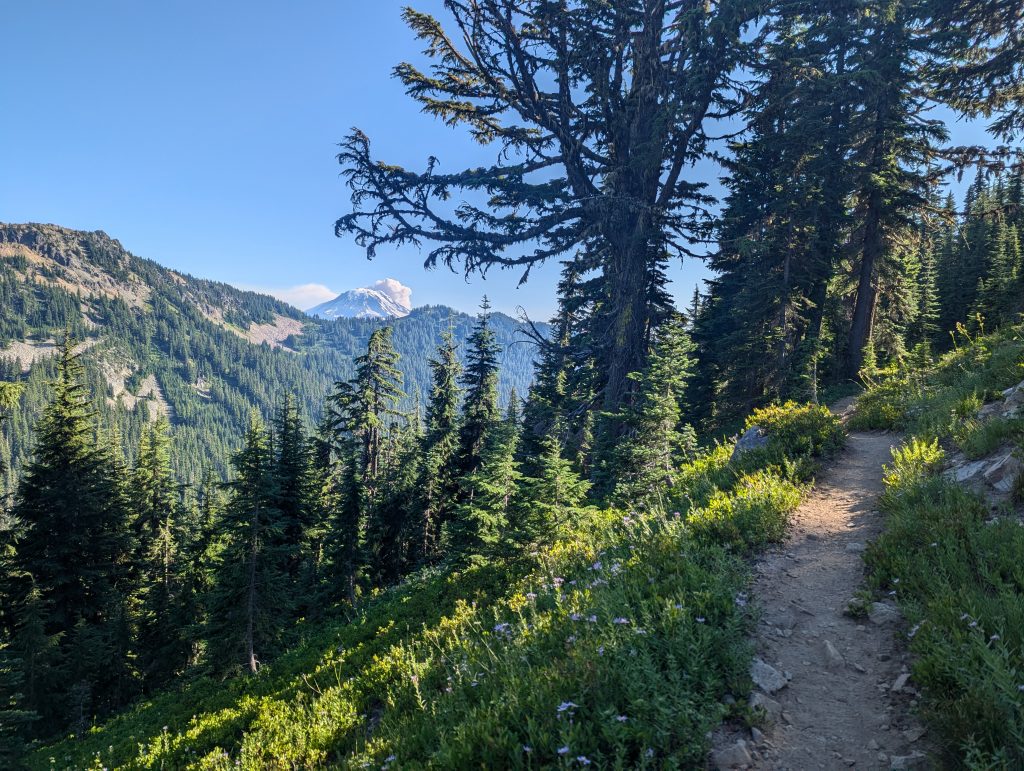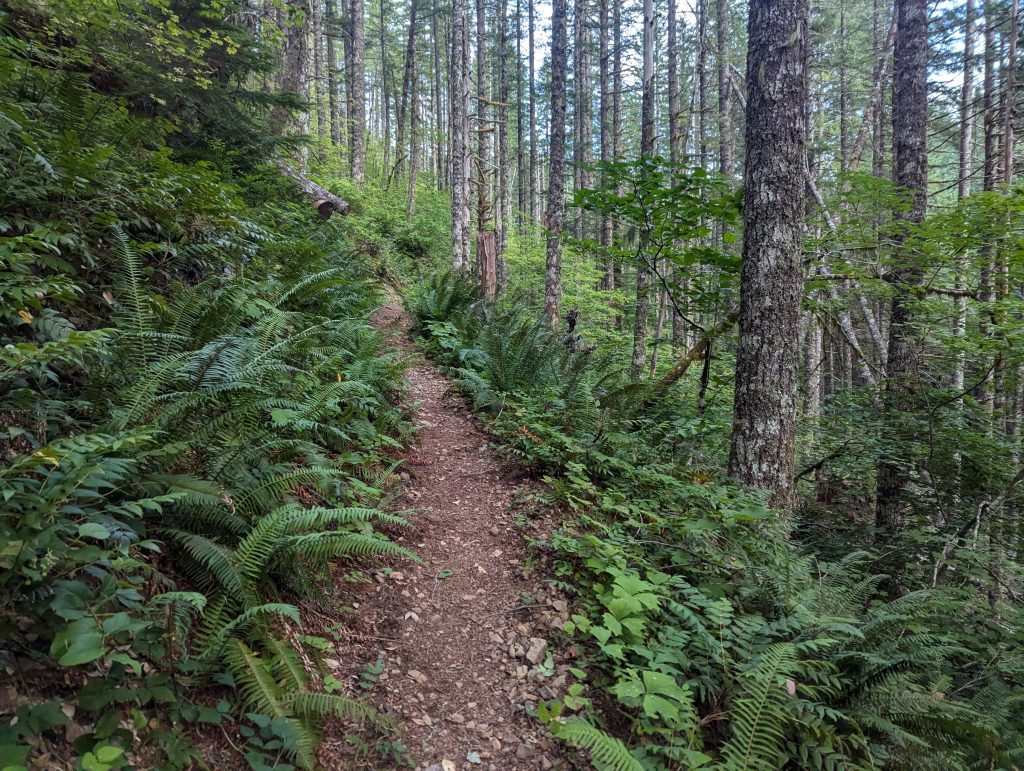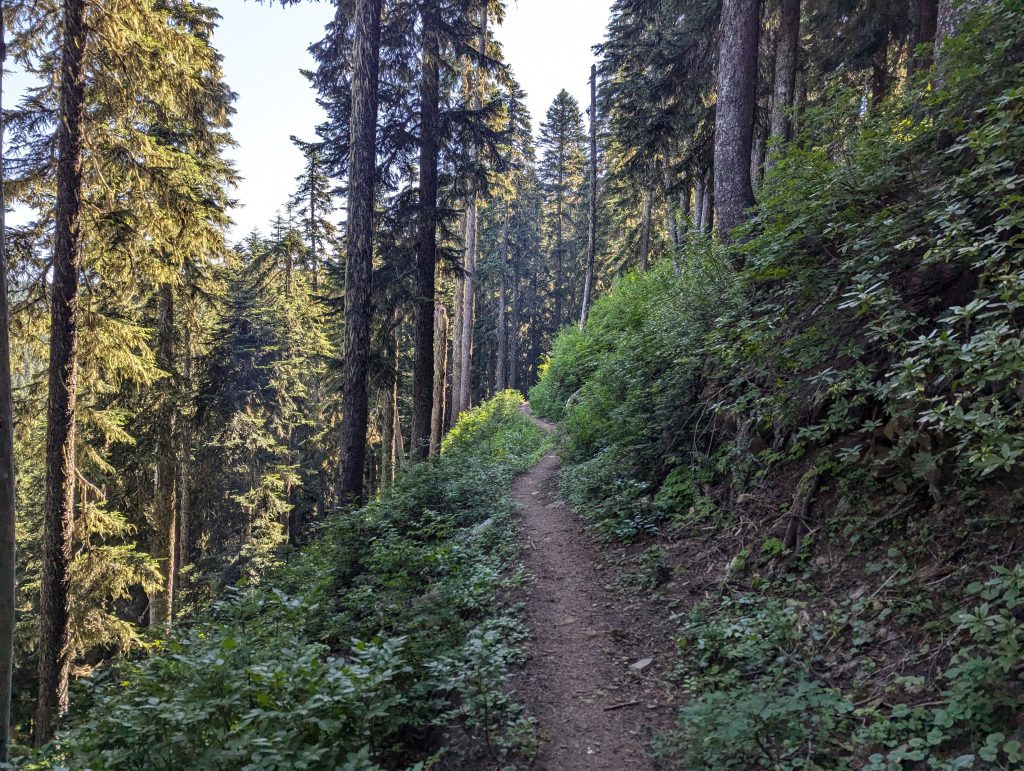 After the bridge, it goes briefly along the road and then the PCT quickly turns back into the forest. Washington then greets me directly with a 1400 meter climb, which makes me sweat pretty quickly in the midday heat. My freshly washed shirt is completely sweaty after just a few minutes and in the next few hours I’m going up the mountain more and more. After all, I’ve been out and about in the forest most of the time, which makes the whole thing a little more bearable.
