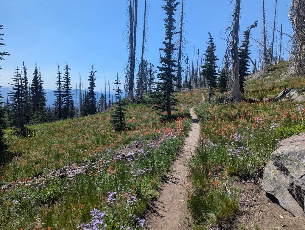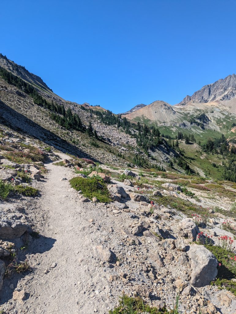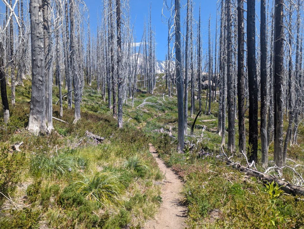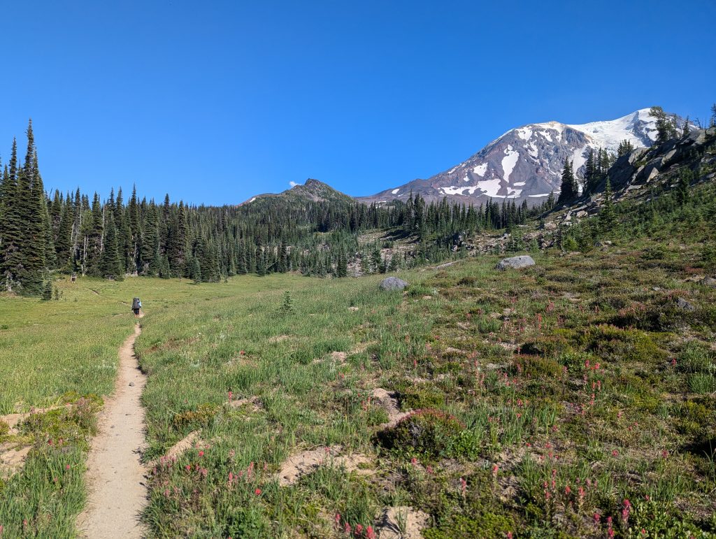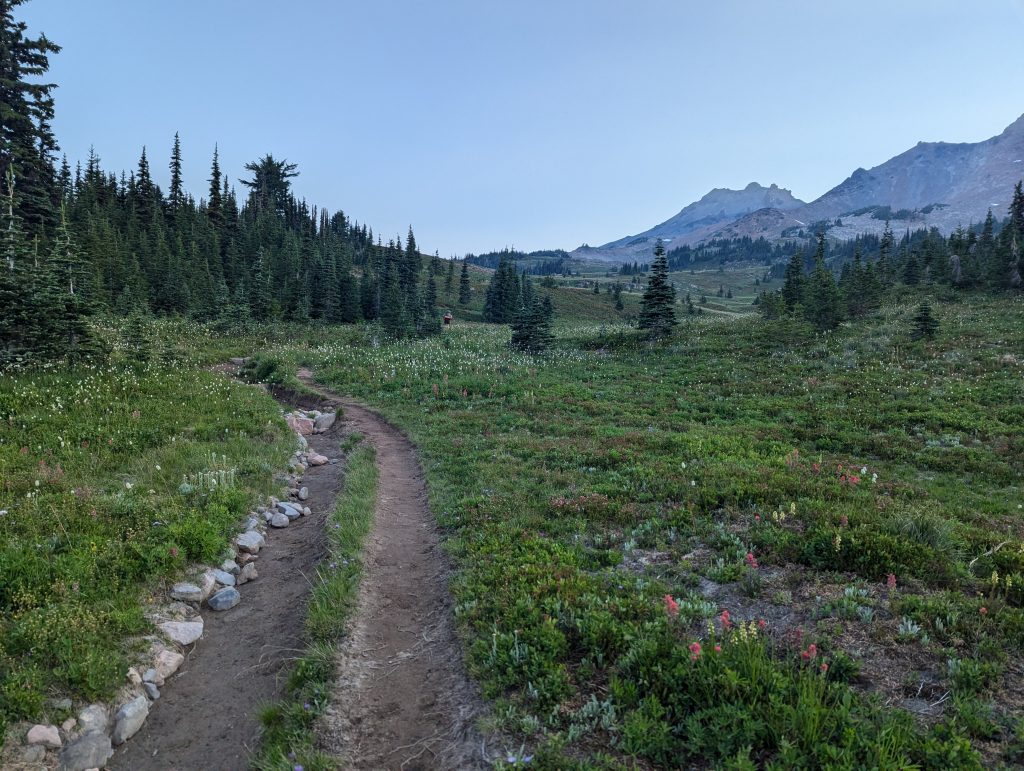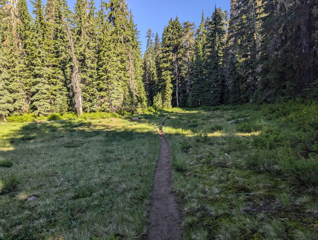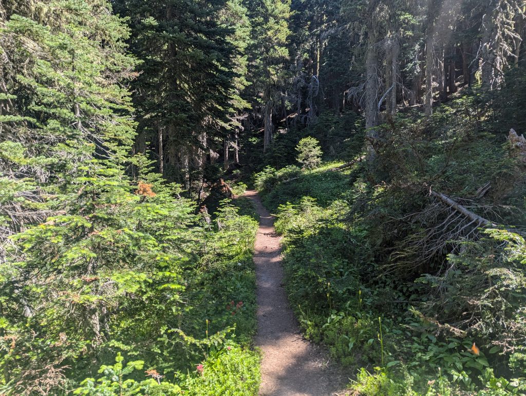 Today I only go 5 miles to the next road, where I want to reach the first shuttle to Trouth Lake, which departs at 8:30 am. Since I still have almost 2.5 hours, I don’t really have to hurry and walk up the longer climb relaxed.