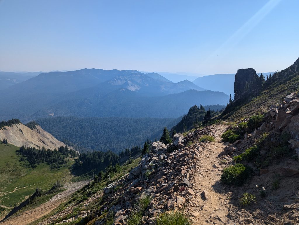 Nevertheless, the climb is very exhausting and I notice how easy the relatively flat sections were in Oregon. Nevertheless, I steadily walk up the mountain. After a few hours I get to the top and at least get a good look back.