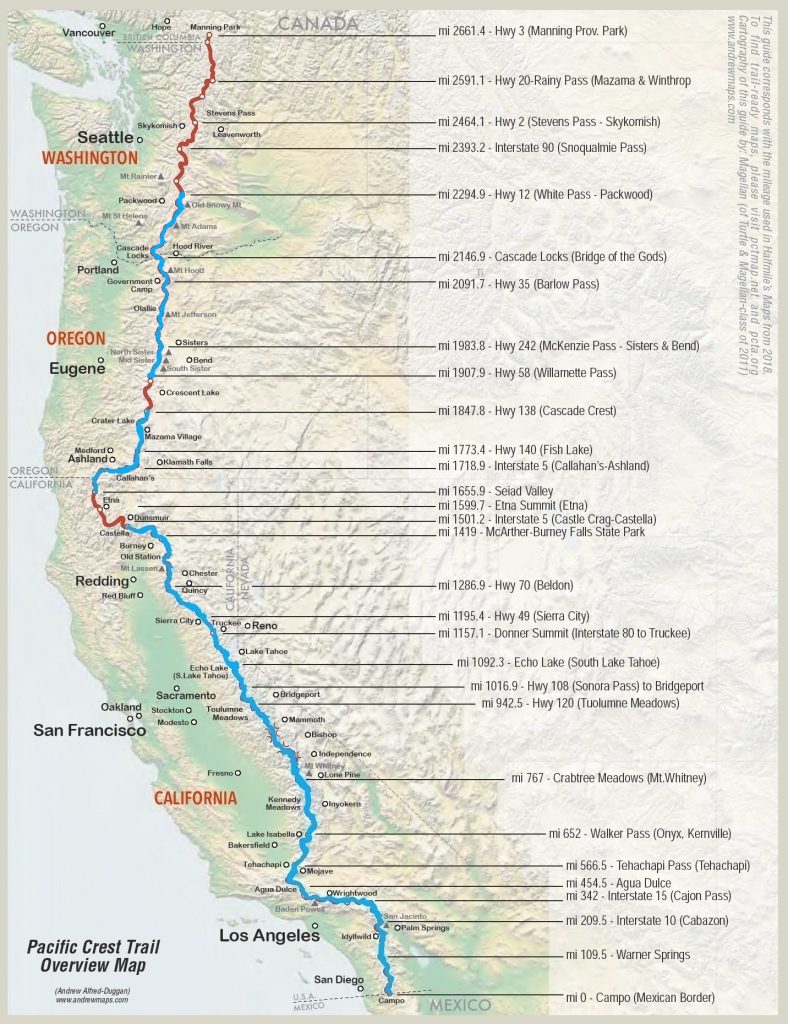 The shuttle also arrives pretty on time and then we drive to the small town where there is a cafe and shop for shopping. I have breakfast in the cafe and meet Gonzo, Hudini and Marsupial, with whom I sit down to eat. After that, I buy food in the shop for the next few days and put everything in my backpack. I drink another coke, eat a burrito and get the latest news about the current fires. Then it’s time again to take a shuttle back to the trail. Luckily I can still get a seat in the car at 12 o’clock and so I’m back on the trail after almost 4 hours.