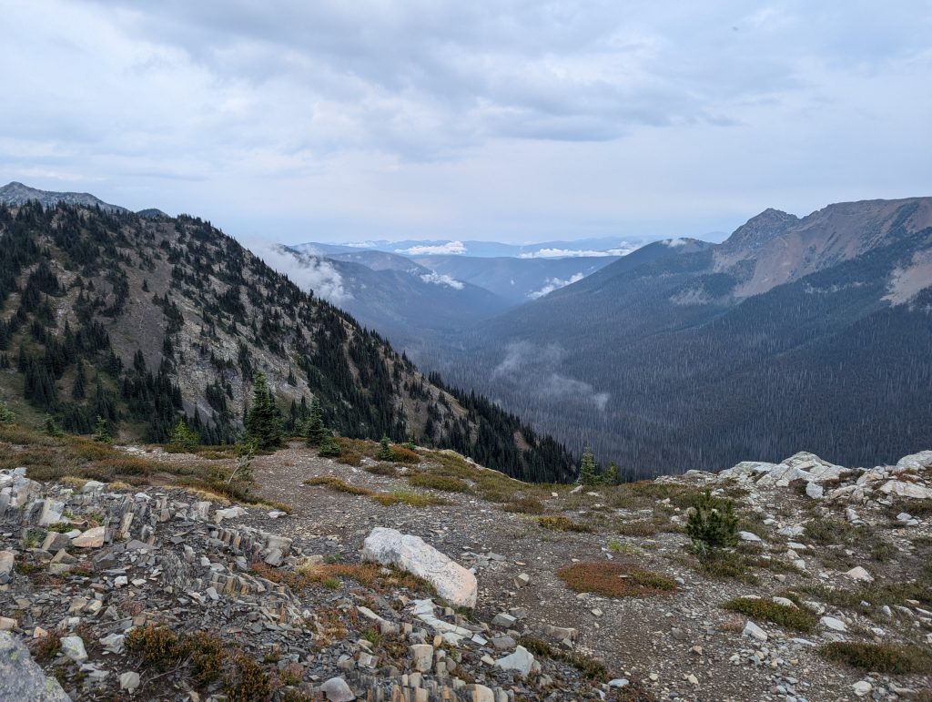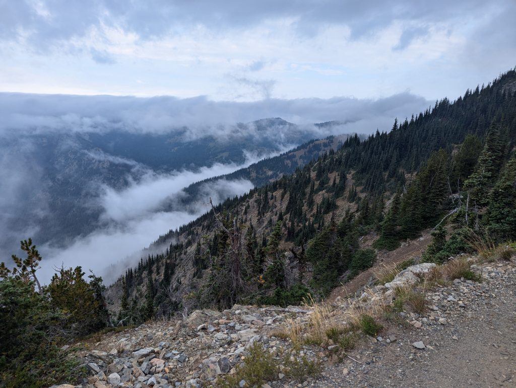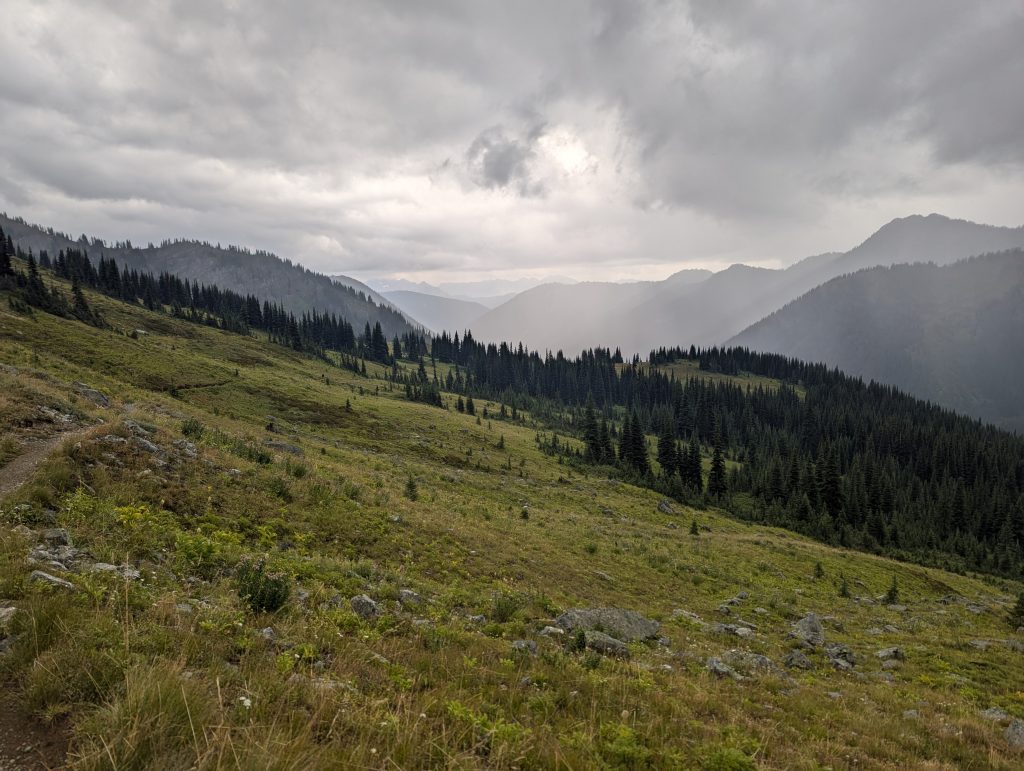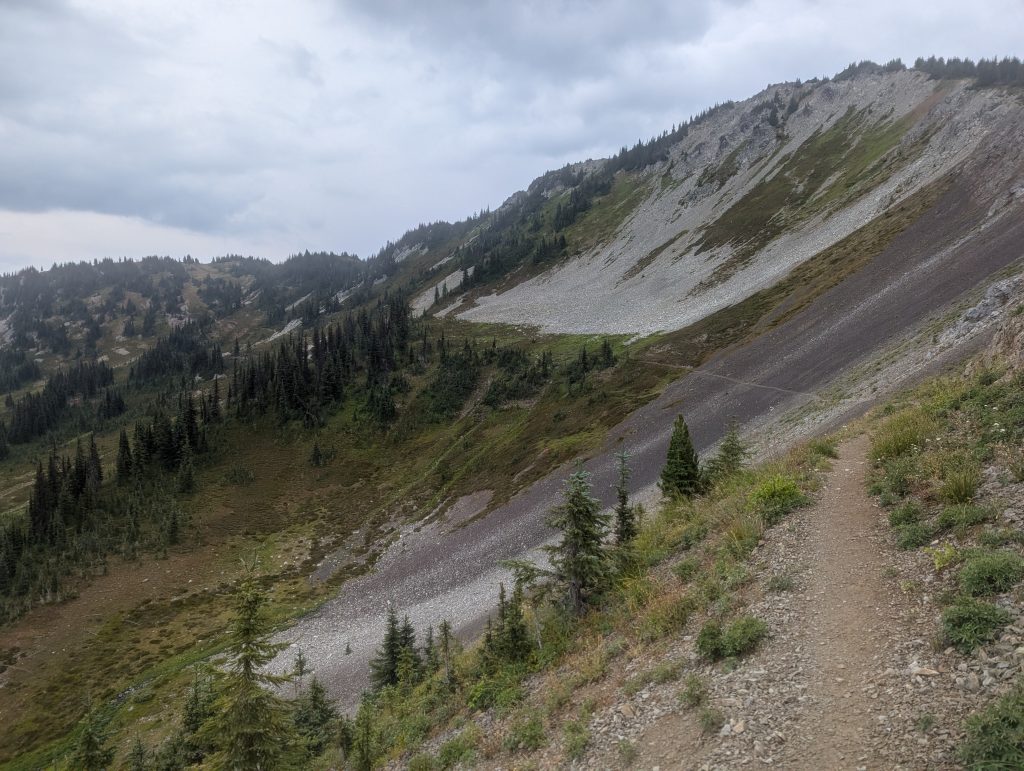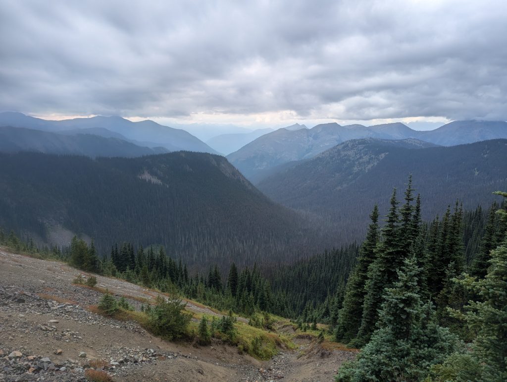 Punctually at 6:30 a.m. I drive with a few other hikers in a converted transporter to the Harts Pass, where we want to get back on the trail. After a somewhat bumpy drive, we arrive at the pass after an hour. Unlike below, it’s pretty cold up here and lots of clouds hang around.